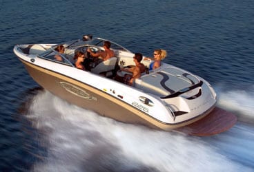 We’ve often thought of Correct Craft boats as sports cars for the water, with their nimble designs and exceptional handling. The Nautique 226 Limited departs from that mold, stretching to the longest centerline, 221¼2 feet, and widest beam, 961¼2 inches, of any Nautique. That pushes it more toward an SUV in terms of interior space — and attracts the eye of buyers shopping for stern-drive runabouts. As the Nautique 226 shoots over the water with quick acceleration, solid tracking and a smooth ride through chop, up to 12 people can stretch out in it. Four passengers fit in the cushy open bow, while more can lounge on the two separate benches in the center of the boat. When it’s time to ski or wakeboard or tube, getting to the swim platform is super easy with the transom walk-through. And everywhere, storage is big, from the cavern under the flip-up observer’s seat to the deep trunk to the 100-quart double cooler. Yet the Nautique 226 isn’t so oversized that it has lost the sports-car feeling.