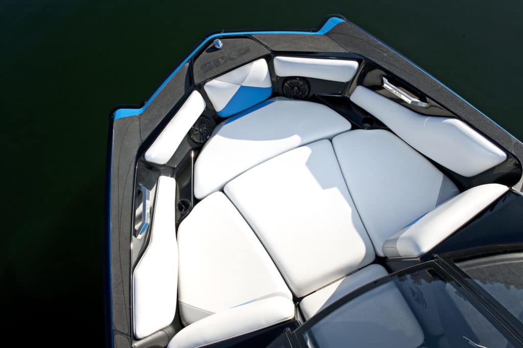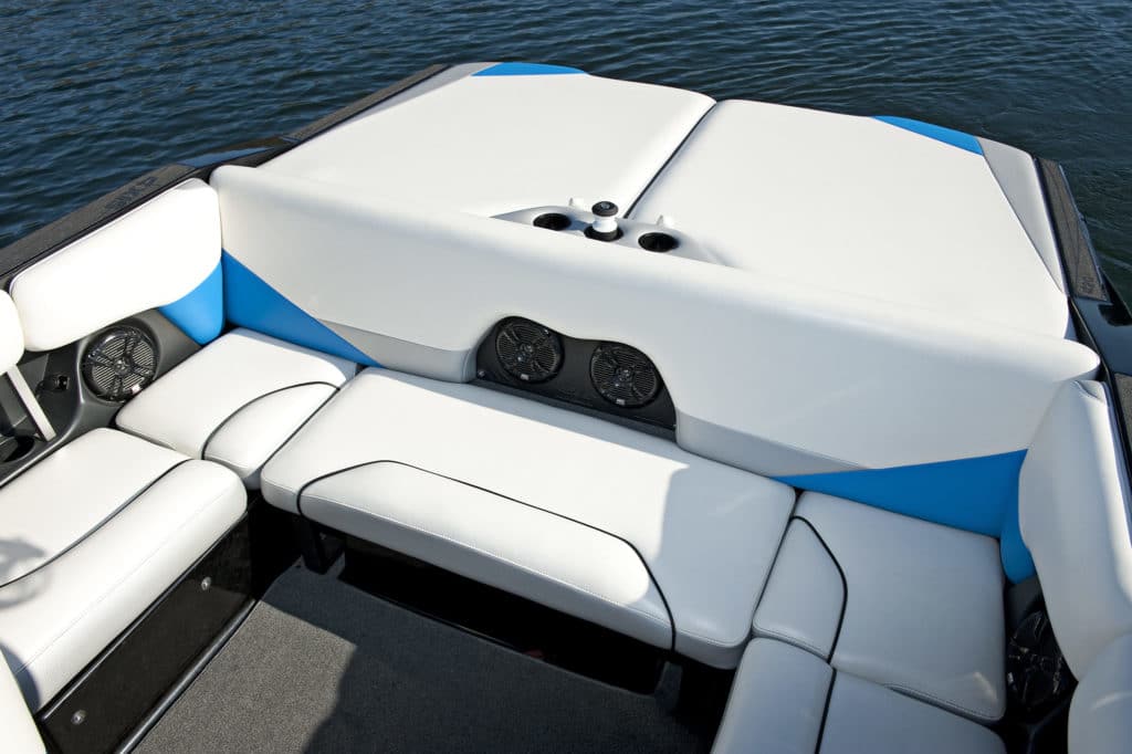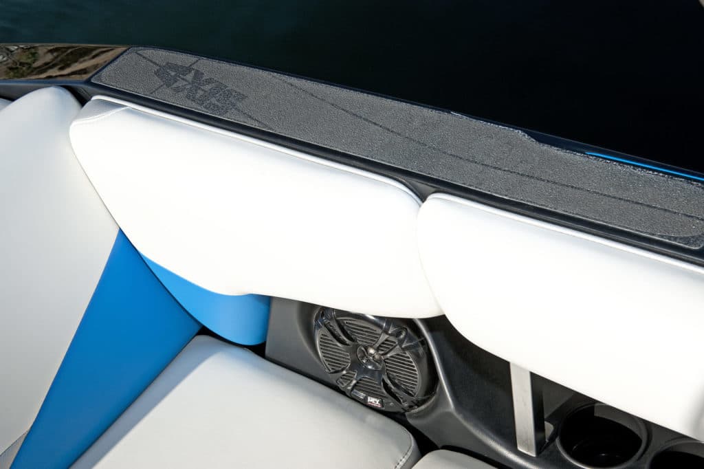 How to max it out: Opt for the Plug n’ Play ballast, which allows you to add three ballast bags on top of the Axis A20’s standard 800-pound system. Load up all that water weight and still hop out of the hole when you upgrade to the 400 horsepower Indmar Raptor engine. Finally, keep your wakeboards, wakeskates and wakesurf boards safe and out of the way by adding a pair of swivel board racks to your FatAX tower.