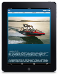 |## 2011 Supra Boat Guide App| |Get behind the wheel of the latest Supra wakeboard boats with the 2011 Supra Boat Guide app, which is available on both the iPhone and iPad. The app, which includes every 2011 Supra wakeboard boat, is packed full of the important information you need to know before buying your next wakeboarding boat. Watch videos that highlight each ski boat’s upgraded features, wake shape and size, and overall performance. Next, flip and zoom your way through extensive photo galleries and look up everything from each boat’s length and seating capacity to maximum ballast and horsepower. When you’re ready to take a test drive, use the app to request a Supra Boats brochure and locate your local dealer. Download the Free Supra 2011 Boat Guide App Now!|