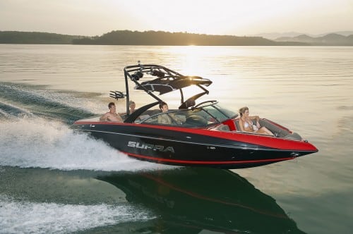 This incredibly smooth and sleek ride begins with the unique Supra Hull — the deepest hull in its class and part of the one-and-only Supra Ride System. The exclusive Supra VISION dash system allows for instant command of everything, from standard Zero Off cruise control and Gravity III ballast to the stereo system and engine diagnostics.
