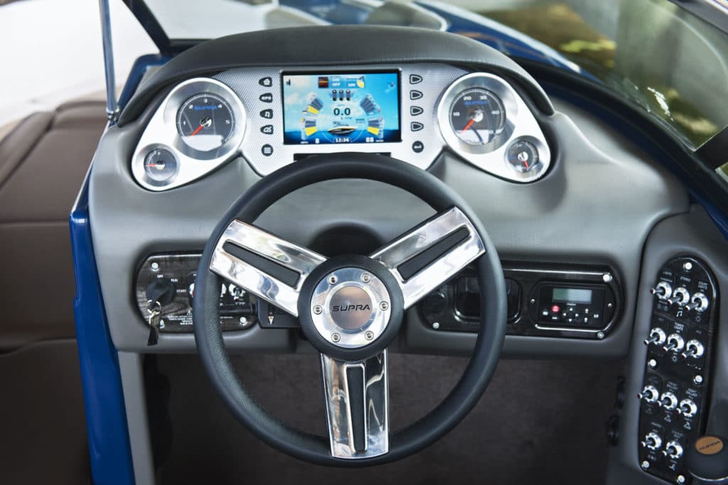 The Supra Launch 21V combines versatile size with a surprisingly deep and spacious interior and wakes that will help beginner to intermediate riders progress with ease. At a little more than 21 feet, the Launch 21V is a good fit for riders who have smaller tow vehicles or garages or who live on smaller lakes. Despite its easy-to-handle length, the Launch 21V boasts one of the deepest interiors of any Supra boat thanks to soaring gunnels that provide safety for the younger riders in the family and peace of mind for their parents. Like all Supras, the Launch 21V comes stocked with standards, including the 1,400 pounds of ballast, Supra’s SmartPlate and Zero Off, which combine to shape a steep, narrow wake that’ll boot even recreational wakeboarders.