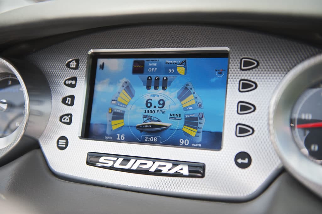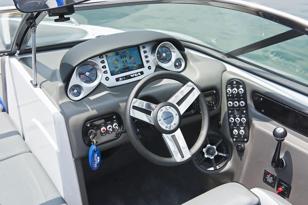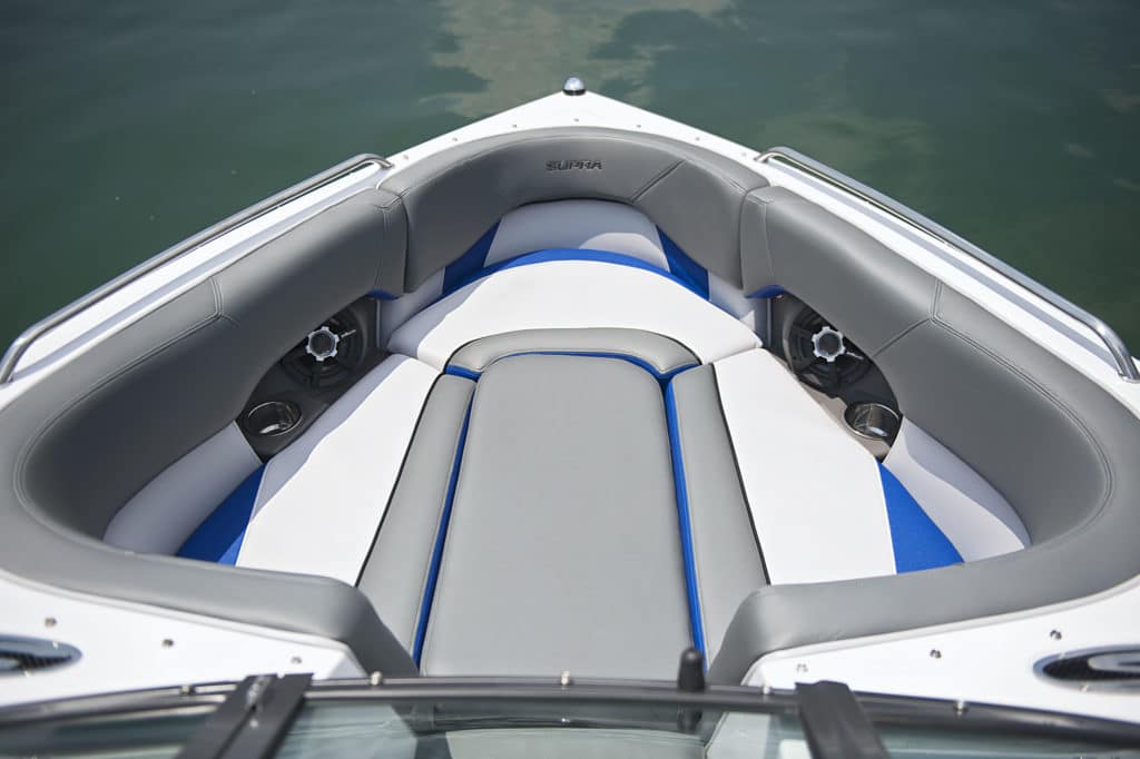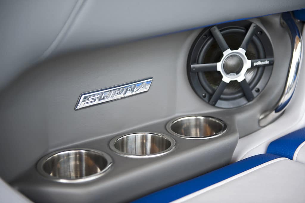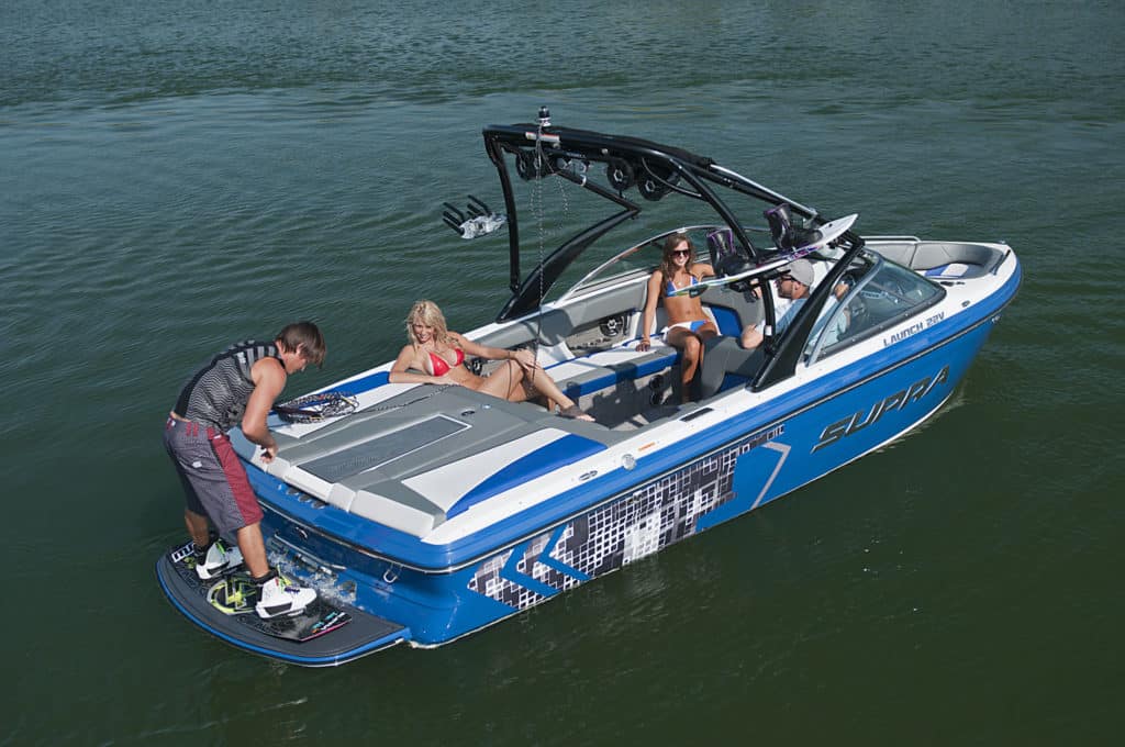 The Launch 22V boasts the most versatile wakes in the Supra line. After all, as the official tow boat of the amateur divisions at the WWA Wakeboard World Championships, the 22V pulls everyone from kids all the way through veterans. Even better, the ability to sculpt the size and shape of the Launch 22V’s wakes to suit wakeboarders of a wide range of age and ability comes standard thanks to Supra’s SmartPlate and 1,400 pounds of factory ballast. The bottom line: No one in the family will be intimidated by the Launch 22V’s wakes, and everyone will have room to grow.