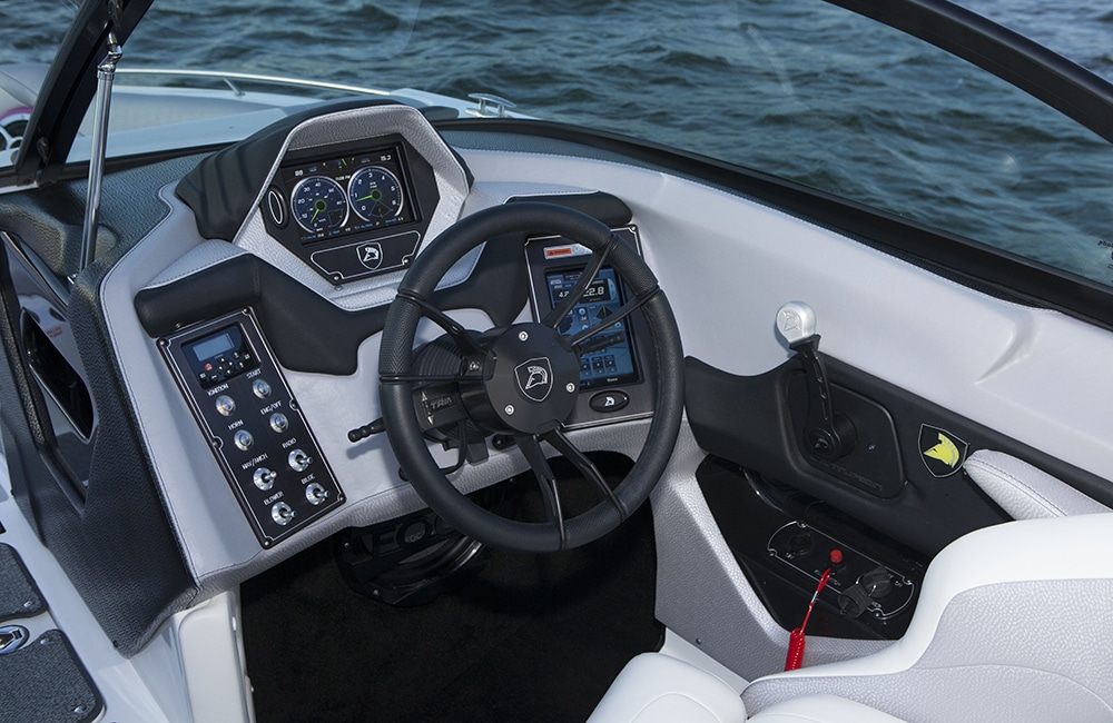 The Enzo SV 244 was Centurion‘s original surf flagship and it still holds up. On top of its world-class surf performance it has luxury and convenience features everywhere you look. The redesigned Touch Vision System II controls the boat’s functions. The system is improved from previous years to be simpler and more intuitive than ever before. It now has two digital screens so there’s not as much complexity as with the original Touch Vision system, but you still get all the functionality.