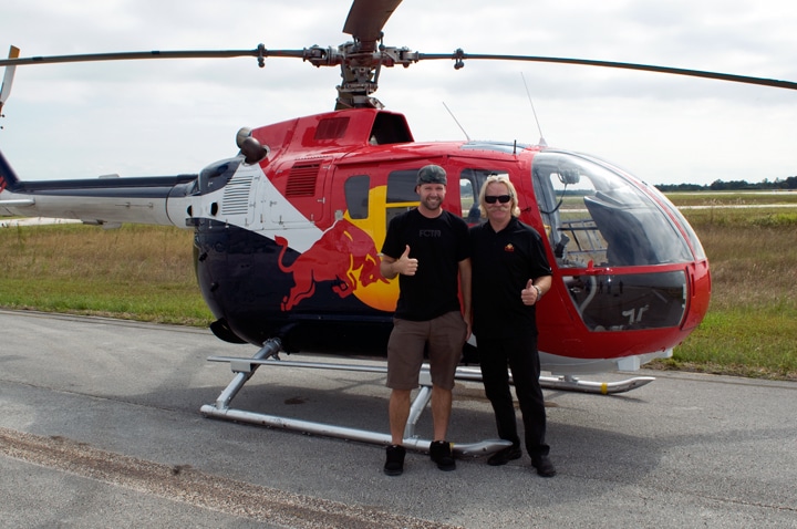 Ever seen a helicopter do aerobatics like loops, barrel rolls and stalls? We hadn’t either. That’s because Red Bull’s highly modified BO-105CBS (nicknamed “Bol Cow”) helicopter along with its pilot — 30-year veteran Chuck Aaron — are the only duo currently certified by the FAA to do aerobatics in a chopper. WAKEBOARDING magazine’s editor in chief, Kevco, along with JD Webb, recently got the privilege of having Chuck Aaron take them for a spin in the Bol Cow in Orlando. Check out the video, it’s pretty unbelievable. You’ll probably feel like you’re in a video game, but this is as real as it gets, especially because the aircraft is still technically classified as “experimental.” Watch the video below.