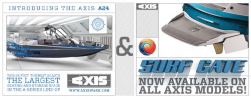 Jack Springer, CEO of Malibu Boats, LLC is very excited to announce both the A24 and SURF GATE to the Axis lineup. “In 2013, we saw an overwhelming acceptance and response to SURF GATE _on our MalibuWAKESETTER’s,” Springer said. “Since we hear and listen to our Axis customers, it only made sense to provide _SURF GATE throughout our Axis line as well. We are committed to producing the most versatile towboats on the water and SURF GATE is crucial for people who are into wakesurfing at any level.”