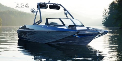 New for 2014, this 24-foot boat is designed for budget-conscious enthusiasts and families looking for space, performance, versatility and affordable essentials. The A24 completes the Axis A-Series trio along with the very popular A20 and A22. The A24 boasts a large capacity and family-friendly layout, while also delivering world-class wakes and responsive handling. All riders will enjoy this wake — from beginners at slow speeds with short line lengths, all the way to Randall Harris going over 28 M.P.H. with a 92-foot rope. The hull is designed for people who want to experience it all; with new technology that enhances the performance and versatility of the wakeboarding and wakesurfing experience. With _SURF GATE _as an option, you really can’t go wrong with the all-new A24.