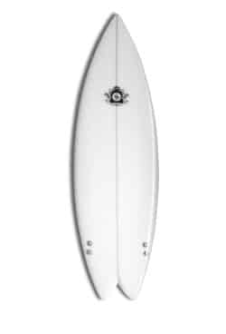 Swallow tail – 15 ounce rails – 10 ounce deck – 5 ounce belly – Flat rocker w/ flip tip – 21” wide – 2 1/2” thick – 5’7” long – Epoxy or Polyurethane – FCS or Future fins – Gorilla grip traction – Your choice of graphics. (graphics + $50)