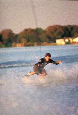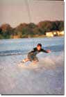 The difference between this and a froot loop is that the board rolls edge over edge, instead of flipping end over end. Take a short but aggressive toeside cut at the wake, but slam on the brakes as you’re coming in and ride up the wake on your heels. As you pop off and start to do a front roll, simultaneously pull the handle to the small of your back and turn your head in a blind rotation (away from the boat.) Keep the handle in close to your body, rope tight, and reach behind you for the handle pass. Then spot the water and get ready to land.