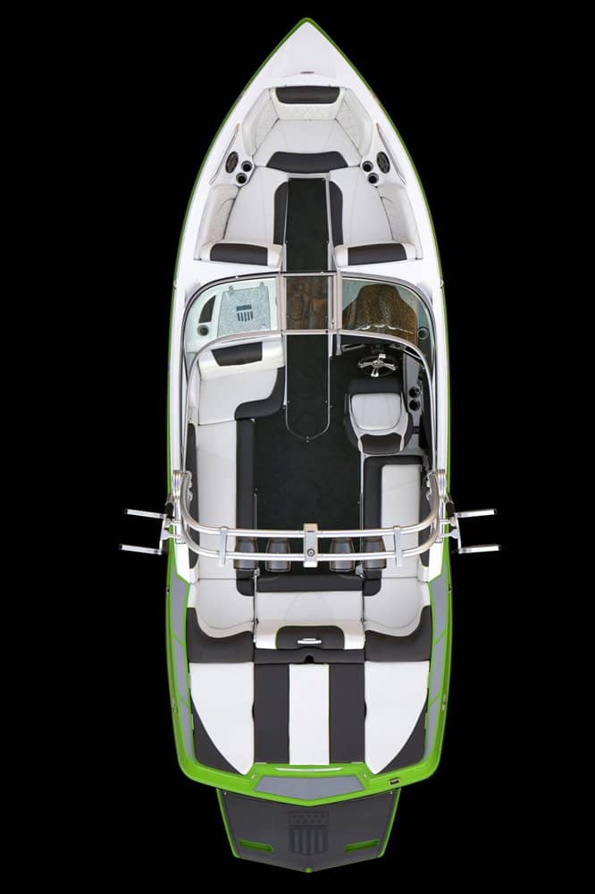 One of the first features to capture the eye is the innovative, sleek design. Modeled after the critically acclaimed 2013 MasterCraft X-Star, the new MasterCraft X-30 offers a progressive flare while staying in touch with its time-honored heritage. At 23 feet 4 inches in length and 100 inches in width, the new X-30 boasts a traditional bow, which is a design departure for MasterCraft Boats, the King of the Twin Tip. Nonetheless, the large bow has plenty of room for you and a few of your closest confidants, even if they are 6’3″. And underneath this social gathering is once again industry-leading storage, with the deep passenger gullwing storage continuing back through the length of the boat. Not only does the X-30 bow have you aptly covered with seating and storage, there is also a clever flip-down door in the front that when opened exposes a stowaway area for your anchor and rope.