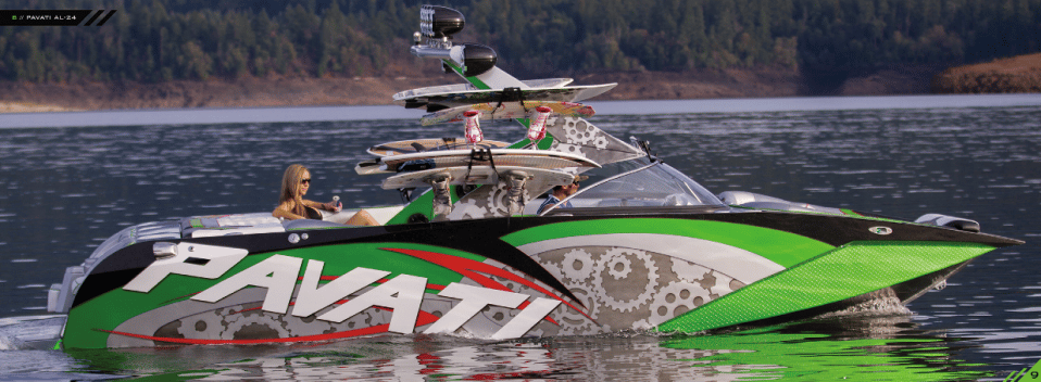 Pavati is an aluminum boat manufacturer with a reputation for building premium high performance fishing boats. The company now looks to make history by unveiling the first true all-aluminum wake boarding/wake surfing boat. Equipped with a corvette LS3 engine, a V-Drive, and over 4000 lbs. of built in internal ballast, this is a hardcore tow sports enthusiasts dream.