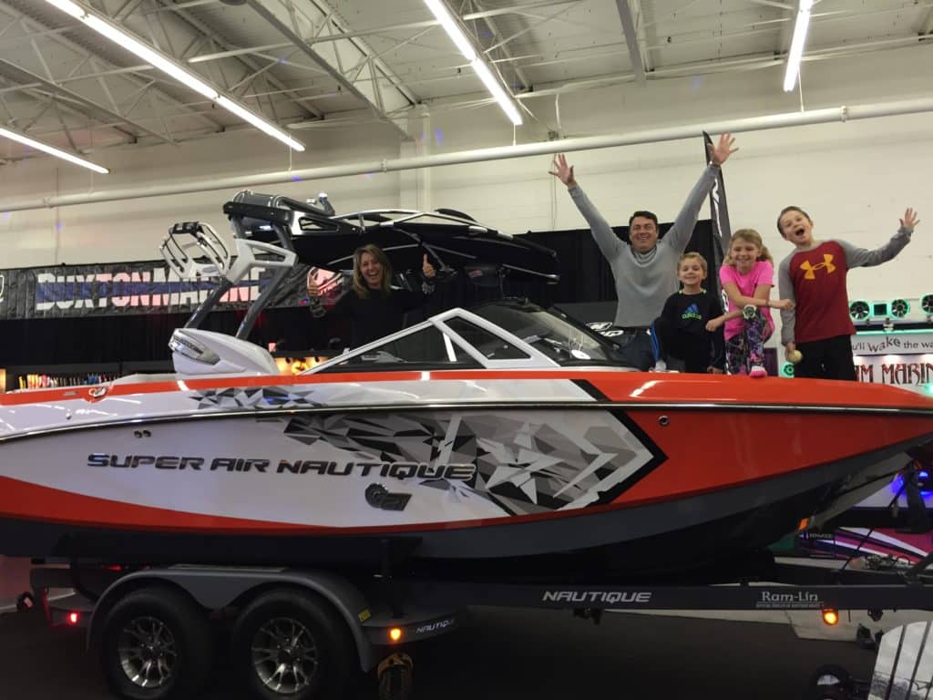 ORLANDO, FLA (February 5, 2015) — This past weekend at the Dallas Boat Show, Nautique presented a 2014 Super Air Nautique G21 valued at $120,000 to the Falconer family from Lewisville, Texas.