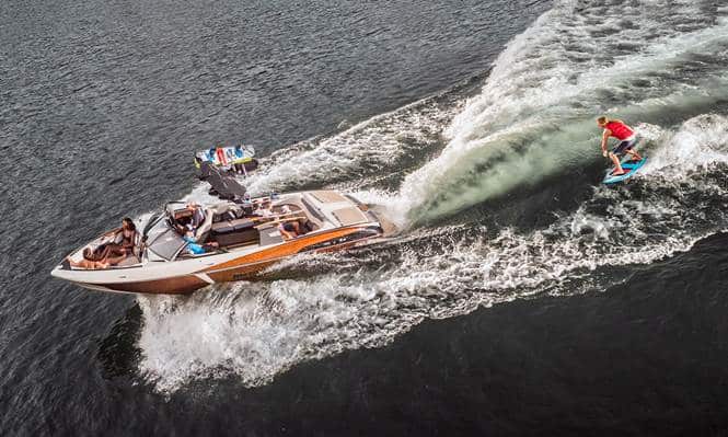 LENGTH: 25′ / 7.62m • BEAM: 102″ / 2.6m • DRAFT: 27″ / 0.7m • CAPACITY: 19 people FUEL: 77 gals. / 291L • WEIGHT: 5,600 lbs. / 2,540kg • HULL: Wake Plus • POWER: 410 – 555HP STANDARD BALLAST: 1,475 lbs. / 669kg • MAXIMUM BALLAST: 4,825 lbs. / 2,007kg (1,825 lbs. + 1,500 lbs. + 1,500 lbs. )