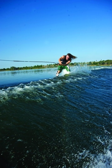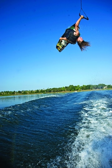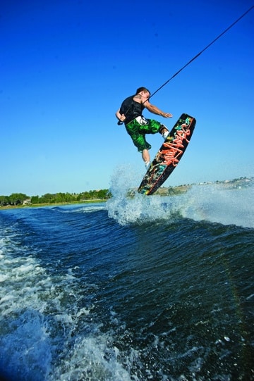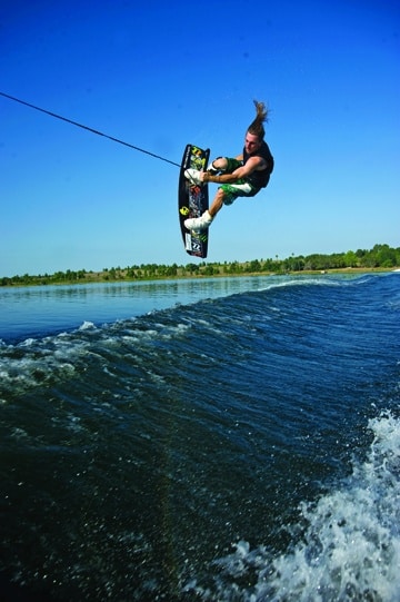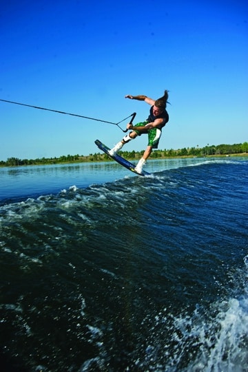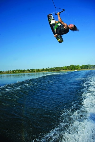 Next up in WAKEBOARDING magazine’s Best of Summer 2009 series: wakeboarding moves. A full feature chronicling all of the year’s best wakeboard tricks will follow, but we thought we’d start with a look back at Shane Bonifay’s wrapped heelside melon backside 720. Nominated for the Oakley Wakeboarding Move of the Year at WAKEBOARDING magazine’s 2009 Wake Awards, this steezy trick is made even better by photographer Joey Meddock, who casts Bonifay’s move against a background of blue and butter.