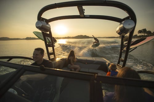Moomba’s AutoFlow Surf harnesses the flow of water at surf speeds with the surf-optimized running surfaces of the Moomba Mondo, Mobius LSV, and the all New 23′ Mojo. Just touch the switch and in a blink of an eye the AutoFlow produces pro level wave shapes for you and your friends to carve on.